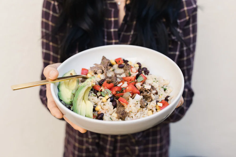 Today I’m sharing one of our favorite dishes - a beef barbacoa burrito bowl! Nate and I used to frequent Chipotle to get this dish, but realized that it is not only adds up, it’s a lot of calories!! Making this at home is so much better because I can use healthier ingredients and control the portion size. Best of all - this recipe lasts more than one meal and it tastes just like (if not better) than the real thing. :)