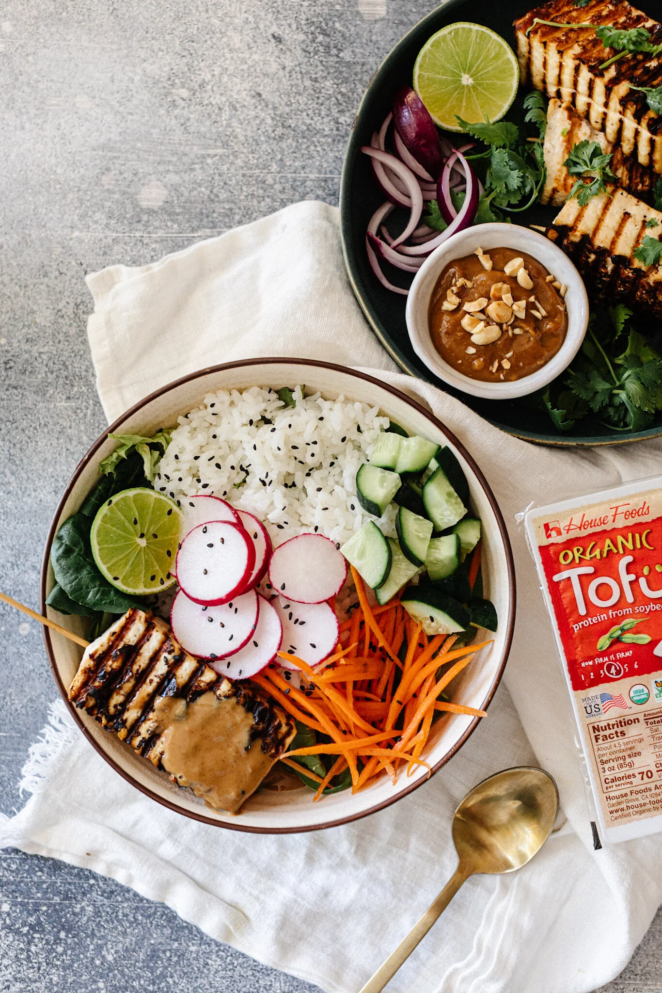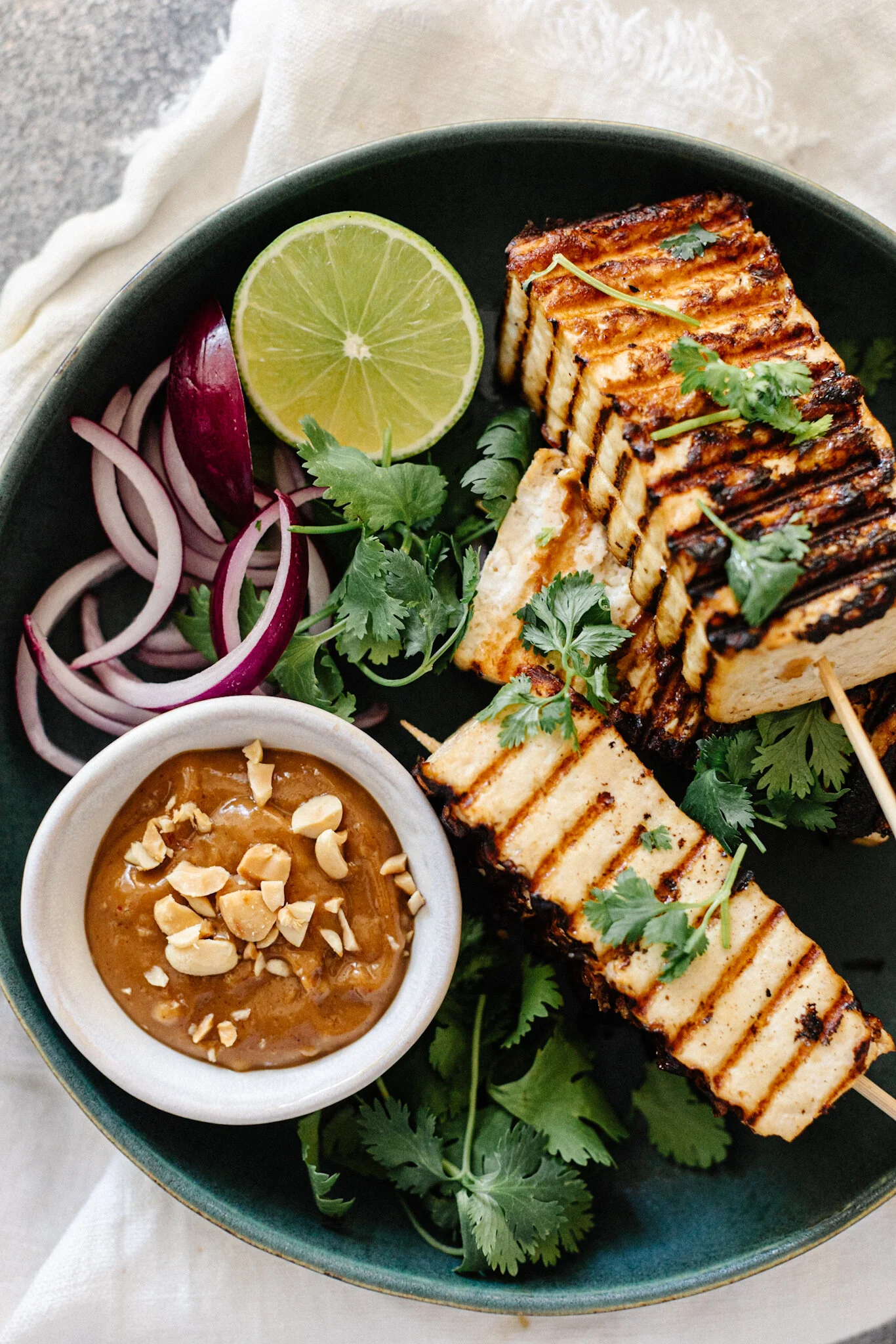 This smoky grilled tofu paired with a nutty savory peanut sauce is your new favorite meatless Monday recipe.