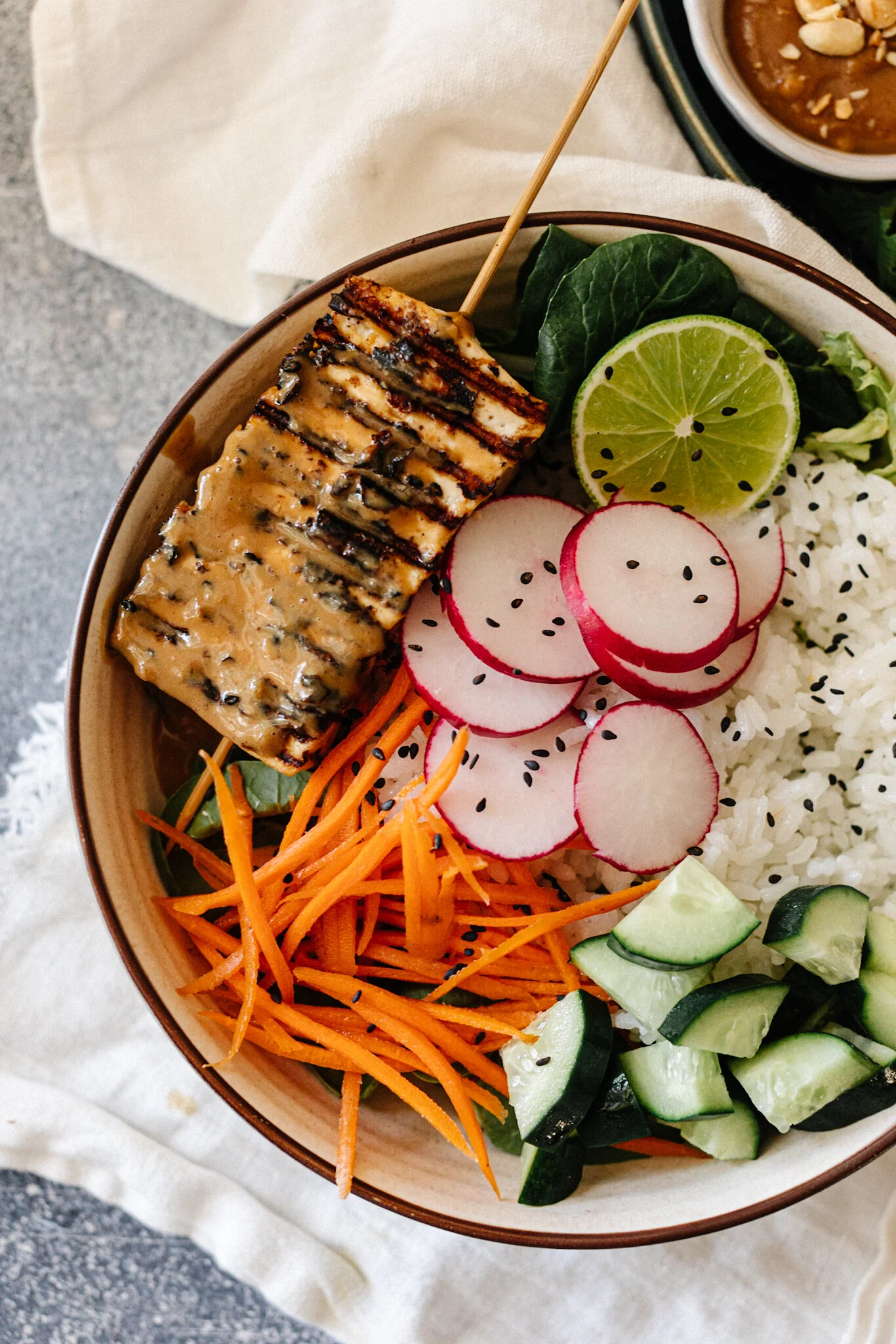 I was inspired by the satay skewers that I often get when we go to Thai restaurants, but since it’s been a while since I’ve been able to enjoy them, I thought I’d recreate my own. I love this because it’s a 2 for 1 deal - basically, if I decide to have the skewers on their own, they make for a lovely and hearty appetizer. If I want something a little more substantial, I add a skewer or two to a rice bowl filled with fresh veggies and the peanut satay sauce flavors everything well. This recipe is super simple and comes together so quickly for a weeknight meal.